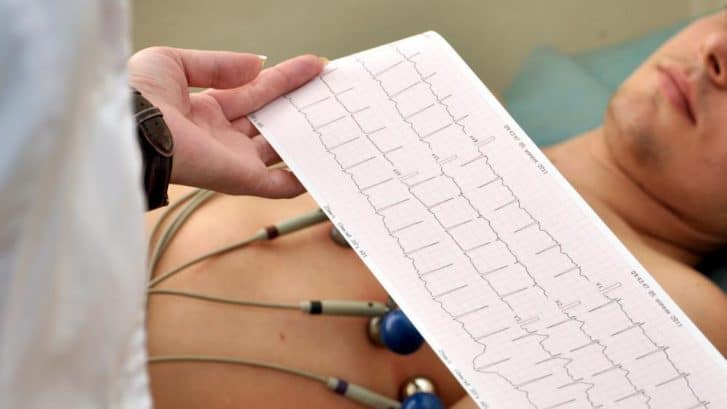No exame, o paciente deita em uma maca e o médico espalha eletrodos para averiguar os impulsos elétricos de áreas diferentes do coração. A oscilação captada é conduzida ao eletrocardiógrafo, aparelho que durante cerca de cinco minutos registra a informação em gráficos impressos numa bobina de papel.